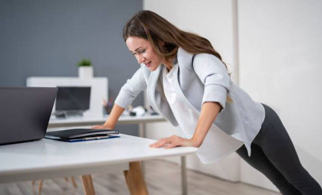 ডেস্ক পুশ-আপ করার সময় পিঠ সোজা রাখুন। এটি শরীরের উপরের অংশকে টোন করে এবং ব্যাকপেইন কমাতে সাহায্য করে।