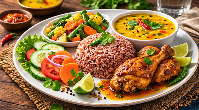 ✔ ১ কাপ লাল ভাত বা ১–২ রুটি