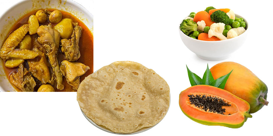 ✔ ফল (আপেল, পেয়ারা, পেঁপে)