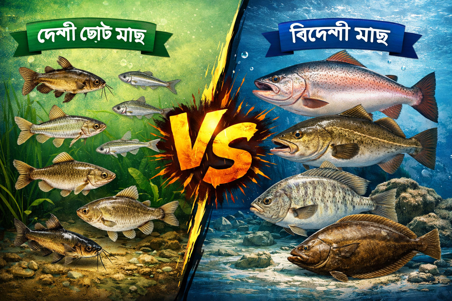 বাংলাদেশ নদীমাতৃক দেশ। এই নদী, খাল-বিল, পুকুর আর হাওর-বাঁওড়ের দেশ আমাদের দিয়েছে এক অনন্য সম্পদ – দেশি ছোট মাছ। অন্যদিকে বাজারে আজকাল নানা প্রজাতির বিদেশী মাছ যেমন – তেলাপিয়া, পাঙ্গাশ, রুই-কাতলার হাইব্রিড জাত ইত্যাদি দাপটের সঙ্গে জায়গা করে নিয়েছে। প্রশ্ন হলো – আমরা আসলে কোনটা খাবো? দেশি ছোট মাছ, না বিদেশী মাছ? আসুন, এই পুষ্টির লড়াইটা একটু খুঁটিয়ে দেখি।