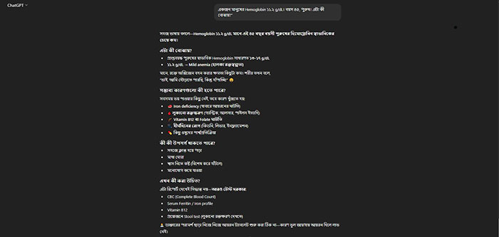 এক কথায়, ChatGPT হলো রিপোর্ট বোঝার টর্চলাইট, সার্জারি করার ছুরি না।